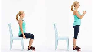 - Pause for a full breath, continue to breathe slowly and sit down. Do not let yourself collapse back down onto the chair, rather control your lowering as much as possible.